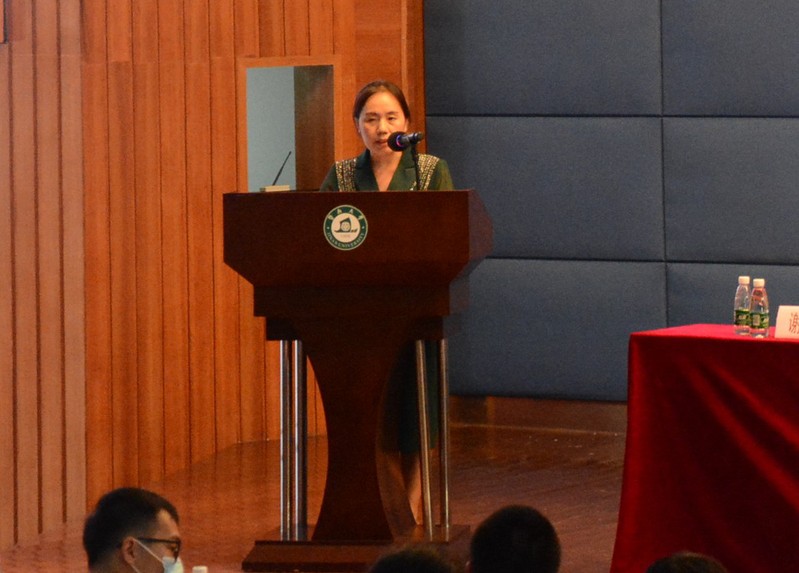 接着,会议进入第四项议程,教师代表谢勇君副教授发言。谢老师劝勉同学们提前做好大学规划并分享了四点学习经验。一是,学会自律;二是,树立远大目标,提高自己的创新力,拓展自己的管理能力、交际能力;三是,学会规划,合理安排大学四年的时间;四是活在当下,付出行动,迎难而上,学会总结。