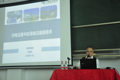 随后,主讲人孙廷玺主任结合丰富的专业经验和阅历,给同学们讲解及分析了高电压绝缘技术,包括绝缘材料种类及特性、介电性能,设备检测试验技术等,带大家一起深入了解和学习供电设备中的高电压绝缘技术。本次讲解深入浅出,语言生动幽默,同学们皆感受益匪浅。最后,刘敏院长为同学们总结了此次讲座的内容和意义,并鼓励同学们积极学习和探索高电压与绝缘技术。