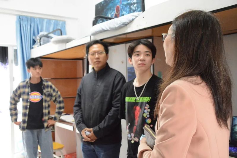 李伟华主任跟大三学长讨论毕业去向,指导同学们制作简历,并且给同学们介绍国内外公司的就业情况,给大家指明就业方向。辅导员苏潇老师询问同学们的学习情况,赞扬了同学们在宿舍的学习热情。