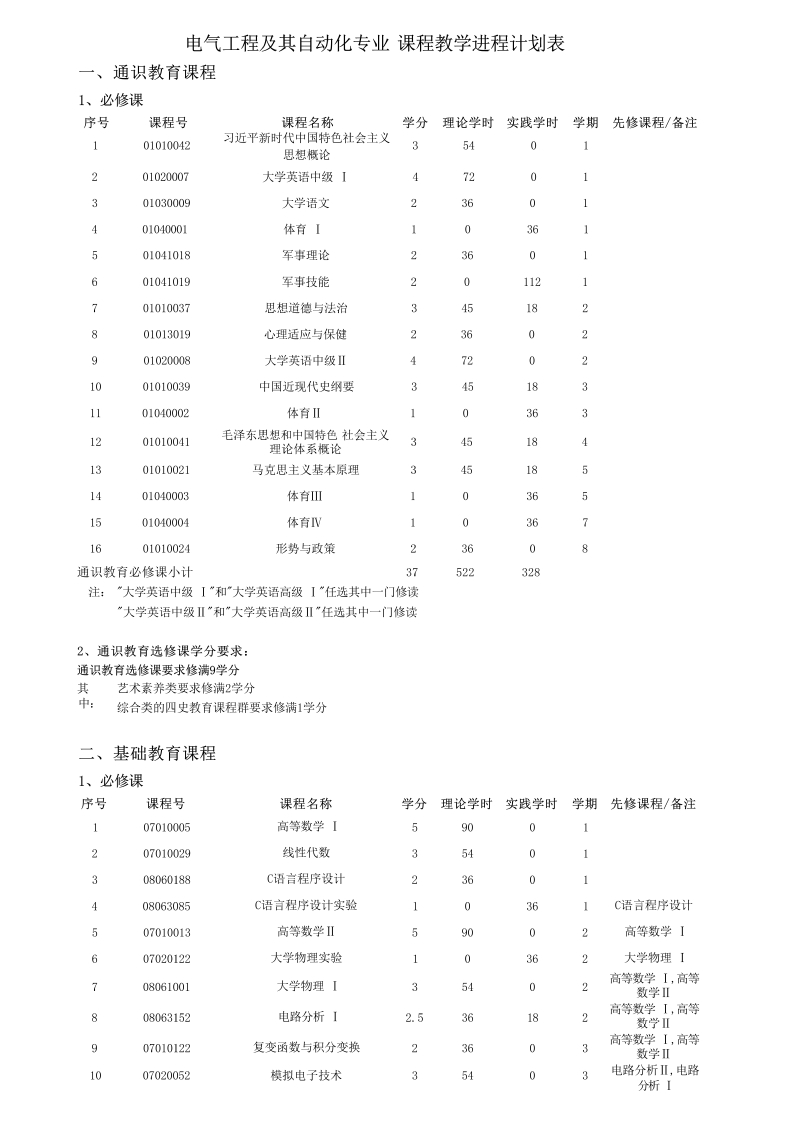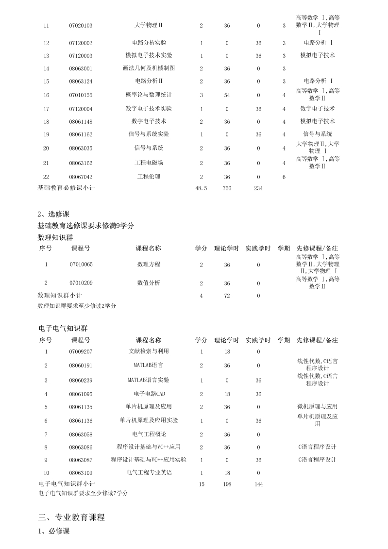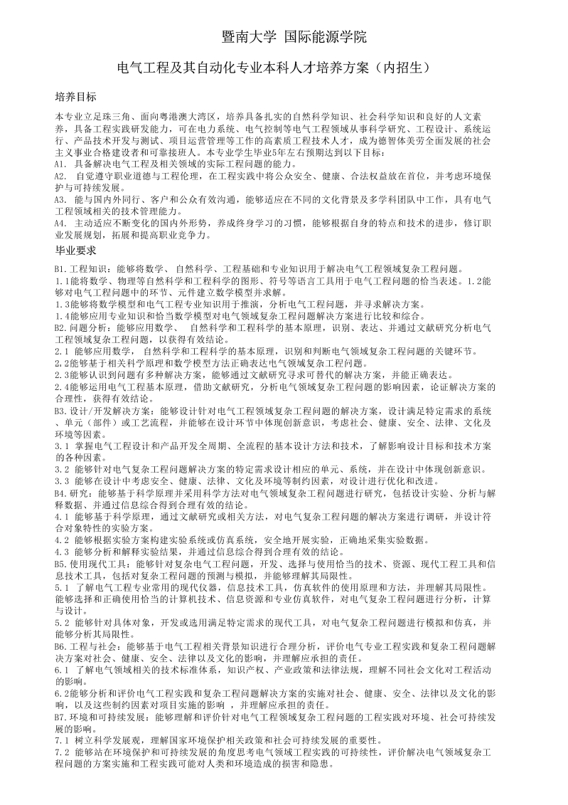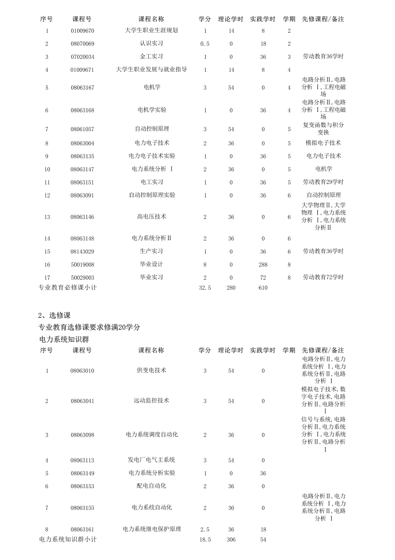 电气工程及其自动化专业本科人才培养方案(内招生)