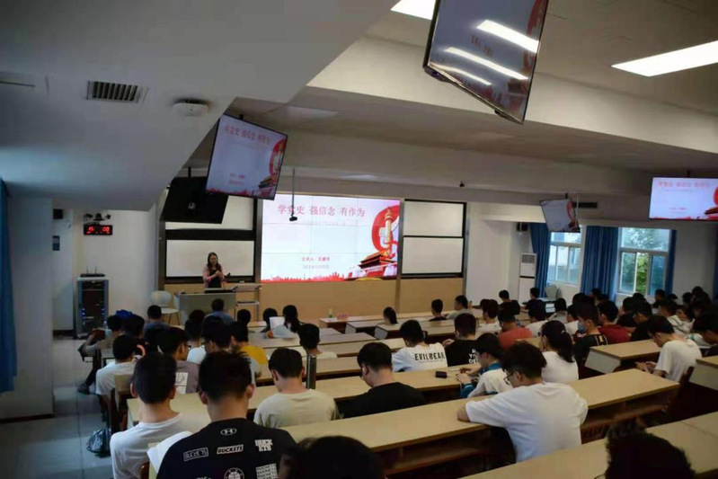 武建华重点讲述了党史五大章节,“初创期、曲折期”、“壮大期、成熟期”、“立国之本——站起来”、“富起来——富国之道”、“强起来——强国之路”。党史、新中国史上的标志事件:中共一大、遵义会议、平型关大捷、延安整风、三大战役、开国大典、改革开放、港澳回归、世贸谈判、北京奥运、脱贫攻坚,武建华娓娓道来,历历如见。在党的十九大以来的新时代,武建华重点介绍了党带领全国人民在疫情攻坚战中转展现的坚定信心和强大组织力量。通过总结“十三五”重要成果,展望“十四五”奋斗目标,她激励同学们增强理想信念,勇挑时代重任。
