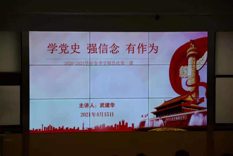 武建华重点讲述了党史五大章节,“初创期、曲折期”、“壮大期、成熟期”、“立国之本——站起来”、“富起来——富国之道”、“强起来——强国之路”。党史、新中国史上的标志事件:中共一大、遵义会议、平型关大捷、延安整风、三大战役、开国大典、改革开放、港澳回归、世贸谈判、北京奥运、脱贫攻坚,武建华娓娓道来,历历如见。在党的十九大以来的新时代,武建华重点介绍了党带领全国人民在疫情攻坚战中转展现的坚定信心和强大组织力量。通过总结“十三五”重要成果,展望“十四五”奋斗目标,她激励同学们增强理想信念,勇挑时代重任。