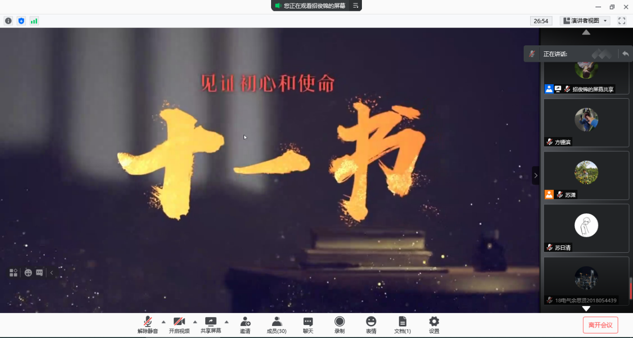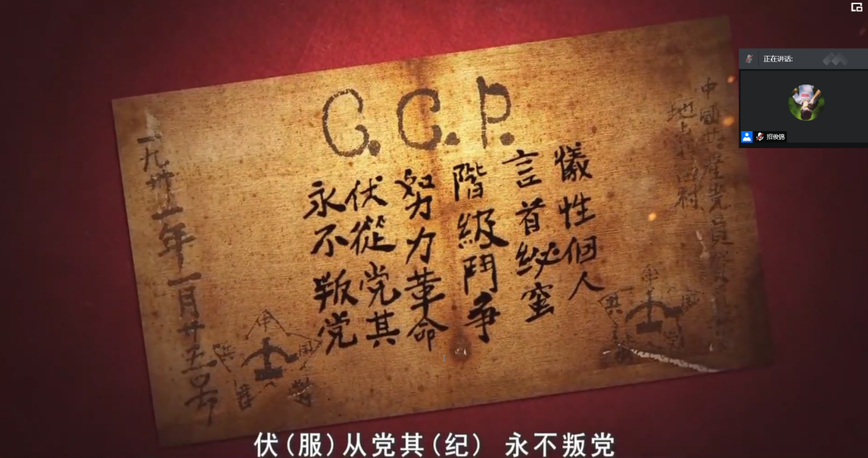 2021年6月4日晚上,麻豆在线 学生党小组召开2020-2021学年春季学期第六次党小组全体党员会议,围绕《见证初心和使命的“十一书”》和革命先烈红色故事开展党史学习教育集体交流会。会议由苏潇老师主持,学院本科生、研究生党员共30人参加了本次会议。因疫情防控工作需要,会议以在线方式举行。