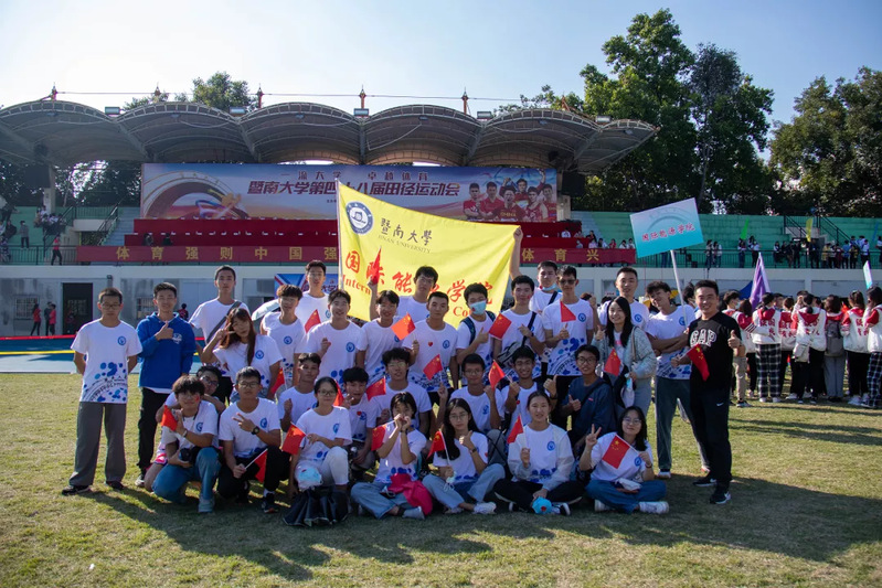 石牌校区,旭日赛场,暨南学子集聚于此,共赴这场盛大的仪式。奥运五将齐亮相,引发全场欢呼;国旗、校旗护卫队步伐铿锵有力,尽显暨南精气神;武术、街舞、龙狮表演气势磅礴、扣人心弦,开幕式现场的气氛高涨。歌声飘荡,旗帜飘扬,全校师生合唱《我和我的祖国》,共同奔跑。