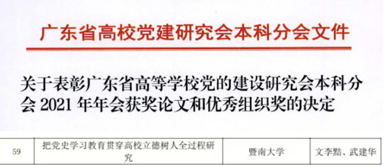 喜讯:我院党建论文在广东省高校党建研究会本科分会2021年年会论文获奖