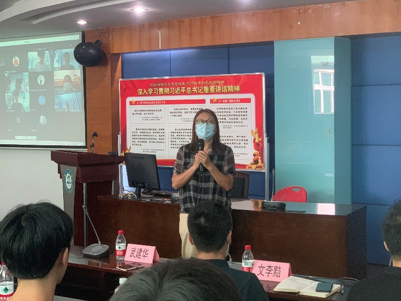 党总支副书记文李黠副教授希望同学们能够积极向党组织靠拢,争取思想进步,及时对国际形势变化做出反馈,在学习之余,也要加强运动,保持身体健康。同时,文李黠副教授对同学们提出两点要求。第一,疫情防控防线不可松懈;进出校门要在网上服务大厅进行报备,获得审批通过才可出行;第二,安全至上;文李黠对住在番禺校区校外宿舍的同学表达了关切与慰问,提醒同学们出行要结伴,尽量不晚归,保障好人身安全,同时提醒同学们注意网络诈骗,保管好私人信息与私人财产。