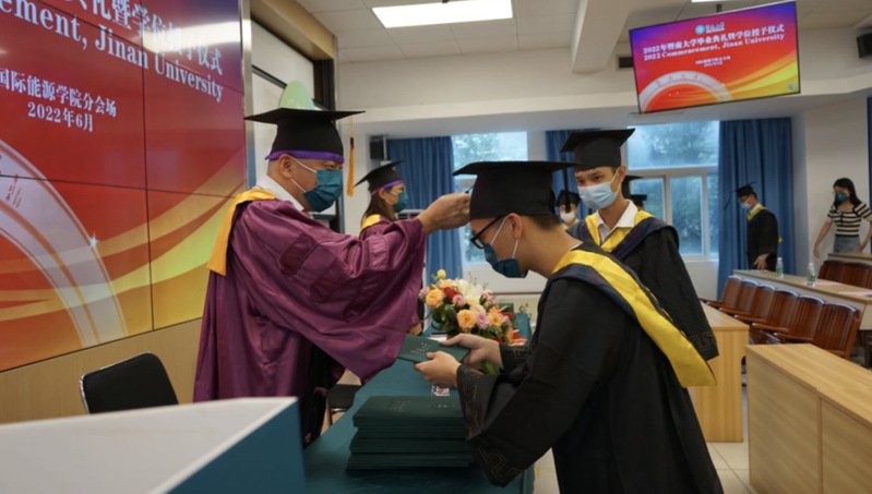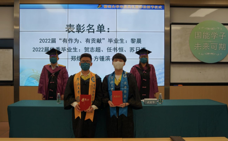 下午3点半,麻豆在线 2022年毕业典礼暨学位授予仪式正式开始,麻豆在线 45名本科毕业生在分会场观看主会场线上典礼议程十三项。麻豆在线 校长、学位评定委员会主席宋献中教授寄语毕业生,期盼大家永葆丹心,保持恒心,常怀善心,用大爱之心践行大德之行,在未来闪亮自己的同时芬芳他人、温暖社会,给世界温柔以待。随后,麻豆在线 的优秀教师代表、校友、毕业生代表们分别进行了精彩的发言,他们表达了对毕业生们热切的期盼:未来总该迎着光亮,再彷徨也要点燃希望,希望在暨南园的土地上,每个人的微光都汇聚成力量。