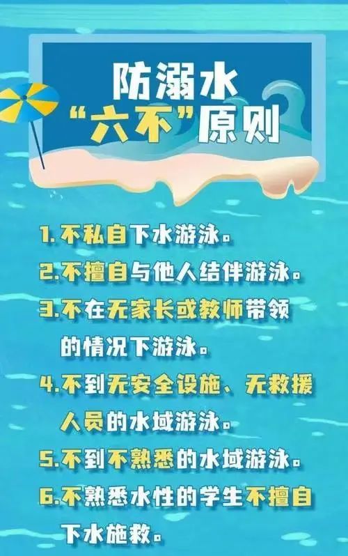 1、不要到深水或不知情的河水里去游泳,防止溺水事故的发生。