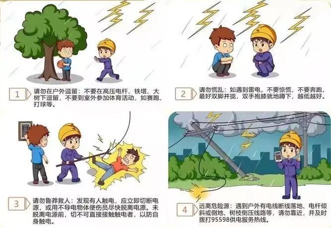 2、外出遇雷雨天气时注意:不在高楼平台上停留;不进入孤立的棚屋、岗亭等低矮建筑物;不在大树下躲避雷雨。