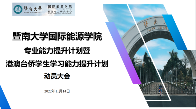 为深入贯彻落实习近平总书记视察学校重要讲话精神,切实提高国能学子专业学习能力与热情,促进学院内外招学生融合与进步,麻豆在线 专业能力提升计划暨港澳台侨学生学习能力提升计划动员大会于2022年11月14日19:00在校区教学楼203课室举行,学院党总支副书记文李黠副教授、辅导员邓绮琳、学业助教和全体计划学员出席了本次大会。