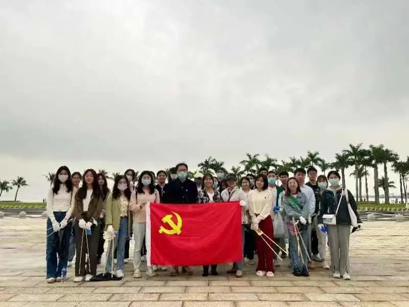 珠海的历史中领略了珠海红色三杰(杨匏安、林伟民、苏兆征)坚定不移的共产主义信念、不屈不挠的革命精神与无私无畏的英雄气概。我们沿着海岸线捡拾垃圾。虽然飘着小雨,海风呼啸,我们仍可以看到环卫工人们在清理沙滩。在我给一名环卫阿姨递水时,她道了声谢,然后擦了擦斗笠下的汗水,说好辛苦啊。我愣了一下,是啊,或许他们也为着自己的生计奔波,但他们的付出不容小觑。不畏严寒,无惧风雨,他们坚守在自己的岗位上,守护城市的环境。常怀感恩之心,珍惜每一份温柔,这次党日活动的所见所闻使我收获良多。