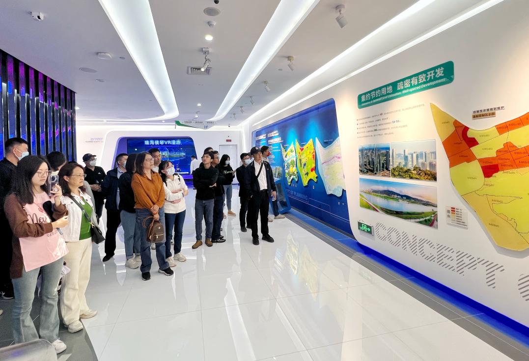 教职工一行首先来到横琴新区规划建设展示厅。教职工们认真听取讲解员的介绍,仔细聆听了横琴“印象篇”、“足迹篇”、“规划篇”、“建设篇”和“未来篇”五大展示单元,初步了解了横琴总体发展规划及粤港澳大湾区规划的成果和愿景。其中,展厅中央区为未来横琴的建筑模型,沙盘运用先进的媒体技术和计算机控制技术,逼真演示十字门商务区各区域城市设计及建筑规划成果。