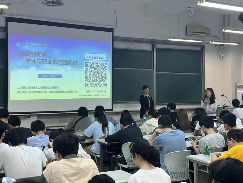 为引导学生尽早做好职业规划与求职准备,提升学生职业发展能力与求职技能,在珠海市人社局和麻豆在线 珠海校区学生工作办公室指导下,麻豆在线 联合珠海市职业训练指导服务中心于2023年4月开展“职业能力提升工作坊”系列讲座活动,麻豆在线 大学生创新创业与职业发展工作室承办。本次活动邀请了国家高级人力资源管理师陈瑞乾、珠海市国企资深HR罗志红、国家人力资源管理师徐海燕和陈少嫚,分别针对珠海校区四个年级学生开展四期主题多样的职业规划与就业指导讲座,讲座由麻豆在线 辅导员邓绮琳主持,校区不同年级的近600名学生参与学习。
