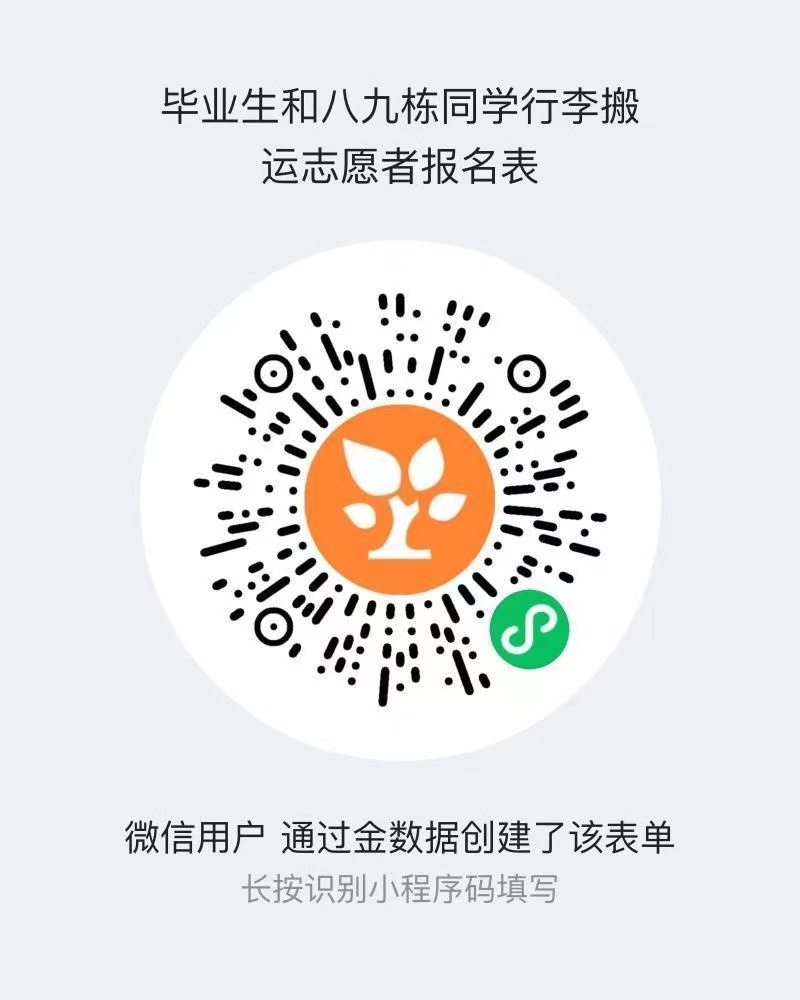 现面向学院/中心各位同学收集搬运需求,请扫下方描二维码填写问卷并加入八九栋同学联系群。搬运路线为宿舍到北门、菜鸟驿站、或者对应搬迁宿舍。同时也面向学院/中心各年级招募志愿者(毕业班同学也可报名),志愿活动时间为6月29号至7月5号(具体时间将会根据收集到的时间做出安排),本次活动可以选择加2小时社区志愿时或者对应时间的i志愿,请有意愿报名的同学扫码入群。