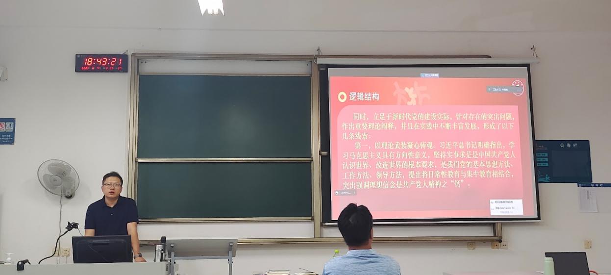 会议伊始,学院党总支委员、院长助理刘雄副教授发表致辞。他总结了本学期深入走访研究生党支部所征集的意见和问题,介绍了毕业生就业与发展总体情况,鼓励学生们积极进取,学有所专,为国家能源事业做出贡献。支部书记苏潇同志领学了《论党的自我革命》。他从总论、框架、思想和实践四个章节对本书的个人学习心得进行了详细介绍。