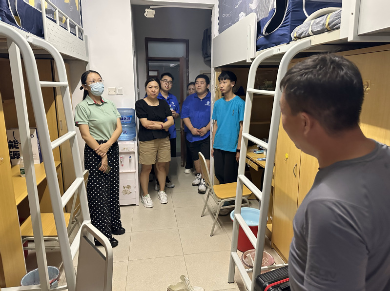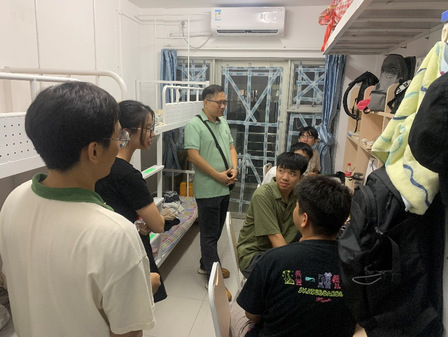 文李黠副书记带领的学工团队在走访宿舍的过程中与23级的新生同学们亲切交流,关切地询问初来乍到的新同学们是否能够适应新的校园环境,对同学的提出的生活上或者专业学习上的问题都耐心作出解答,并叮嘱同学们在接踵而来的军事训练中应不怕困难、勇于挑战,展现新一届暨南人的精神风貌。