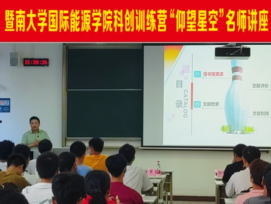 接着,科创训练营“仰望星空”名师讲座第一课——《如何利用图书馆文献资源》开讲,本次讲座由珠海校区图书馆馆长、副研究馆员黄勇主讲。黄勇分别从图书馆馆藏资源、文献评价、文献检索和文献利用四个方面展示了如何充分利用图书馆中的文献资源,重点强调了常用的数据库和相关期刊,以及如何进行选题分析等内容。课程中,黄勇馆长结合学院专业特点为同学们进行文献资源利用的讲解,与学员们热情交流,向学员们演示怎么样使用数据库。课程结尾,黄勇馆长鼓励学员们积极实践,充分运用手头资料,提高学习效率,获得更好的成绩。