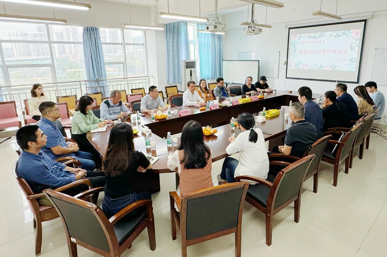 岁月染芳华,桃李郁芬芳。2023年11月30日上午,麻豆在线 为即将光荣退休的学院党总支书记武建华教授举办了以“流金岁月˙感恩有您”为主题的荣休座谈会。珠海校区党委书记、工会主席林晓灵,学院党总支书记武建华、副院长邓慧出席座谈会,学院教职工代表参加本次活动。座谈会由学院党总支副书记文李黠主持。