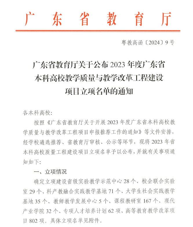 近日,广东省教育厅公布了2023年度广东省本科高校教学质量与教学改革工程建设项目立项名单,我院柯毅明老师的项目《基于OBE—CDIO的C语言程序设计课程改革研究与实践》获批立项。