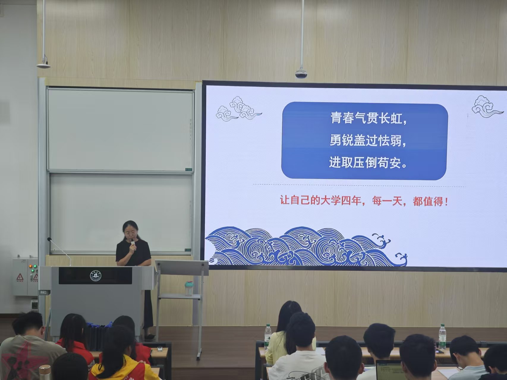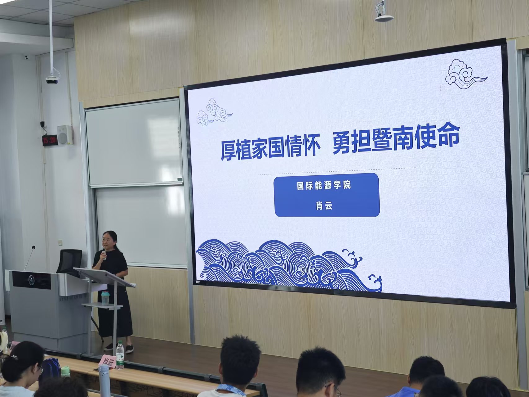 党总支副书记肖云以“厚植家国情怀,勇担暨南使命”为主题,在阶梯四教室为2024级本科新生主讲思政第一课。