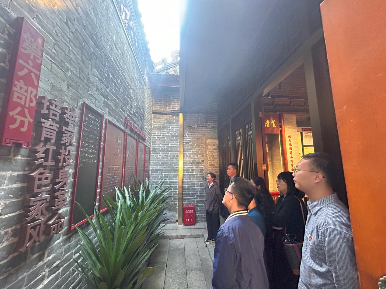 随后来到杨匏安陈列馆内,馆内丰富的历史资料与文物陈列,生动展现了杨匏安光辉的革命历程和崇高的精神风范。杨匏安,中国共产党早期优秀的革命家、理论家,华南地区最早的马克思主义理论传播者,史学家将他与李大钊并列,誉之为在我国开创马克思主义新风的“北李南杨”。党员们认真聆听志愿讲解员的讲述,深入了解了杨匏安同志在不同历史时期的事迹与贡献,深刻体会到杨匏安同志展现出的身陷囹圄仍坚贞不屈、坚守党性的革命信念,深刻感受到老一辈党员坚定的理想信念和无私的奉献精神。参观过程中,党员们不时驻足凝视,相互交流感悟。
