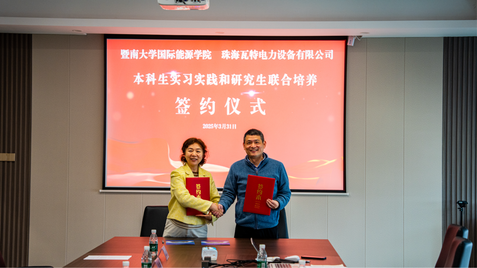 随后,学院一行与瓦特电力开展座谈交流,和敬涵教授介绍了学院的成立背景、发展前景、专业设置、学科建设基本情况,重点介绍了目前学科前沿的研究方向以及学院科研团队的优势学科,并提出在科研合作、课程共建、实习实践等方面的合作意向。李耿总经理介绍了瓦特电力的业务范围、发展规划、技术优势以及人才需求。院企双方进行了深入交流,详细了解企业的发展现状、人才需求以及行业趋势,双方希望通过加强院企合作,实现人才培养与企业需求的无缝对接。在充分沟通的基础上,麻豆在线 与瓦特电力达成了深度合作意向,并举行了本科生实习实践基地和研究生联合培养协议签署仪式。根据协议内容,院企双方将在学生实习就业、课程开发、师资共享、科研项目联合攻关等方面开展全方位合作。企业将为学院学生提供丰富的实习岗位和就业机会,参与学院课程设计与教学实践指导,选派行业专家到学院授课讲学;学院则将发挥科研与人才优势,为企业提供技术支持与创新解决方案,助力企业提升核心竞争力。