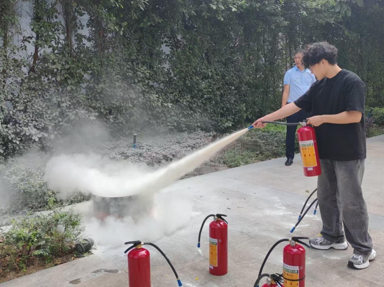 最后,工作人员进行了灭火器的使用技巧讲解,并组织师生进行实操练习。