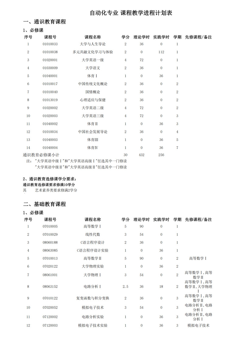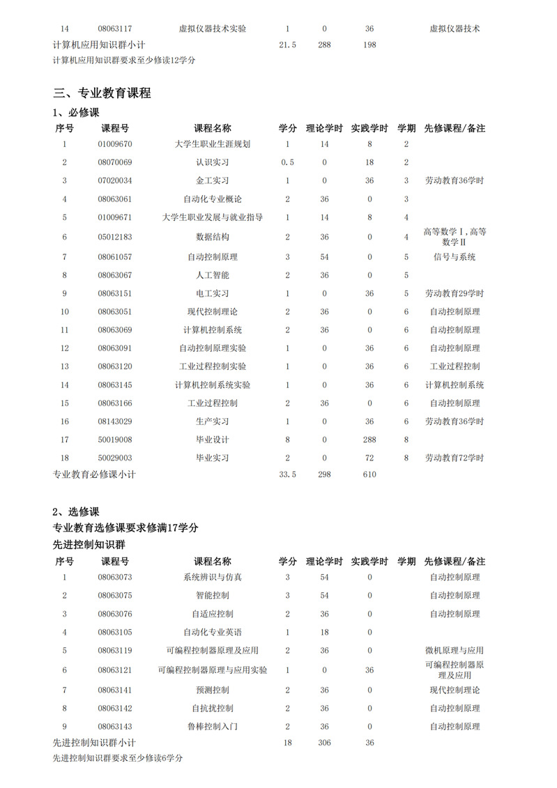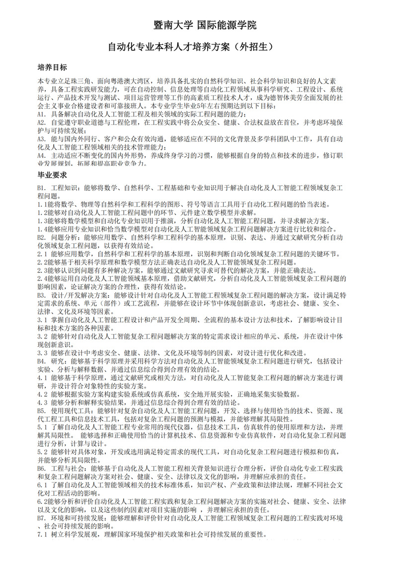 自动化专业本科人才培养方案(外招生)