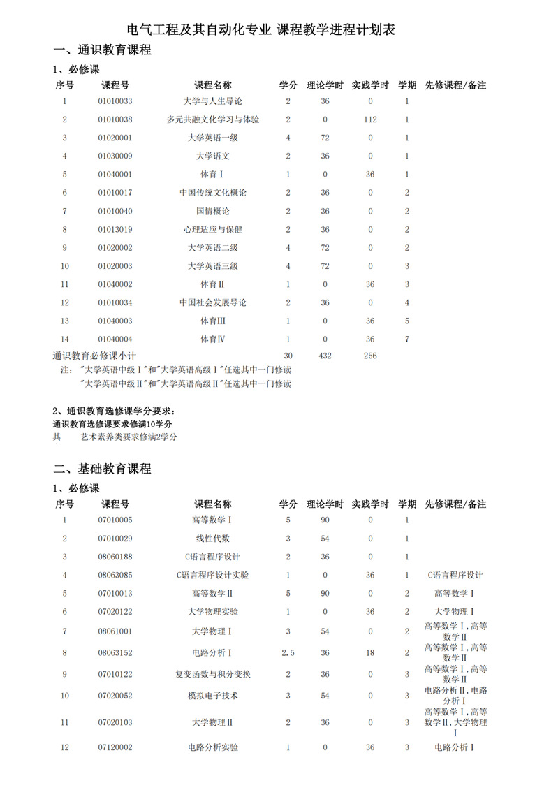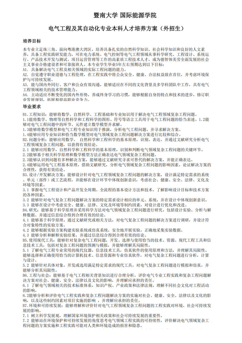 电气工程及其自动化专业本科人才培养方案(外招生)