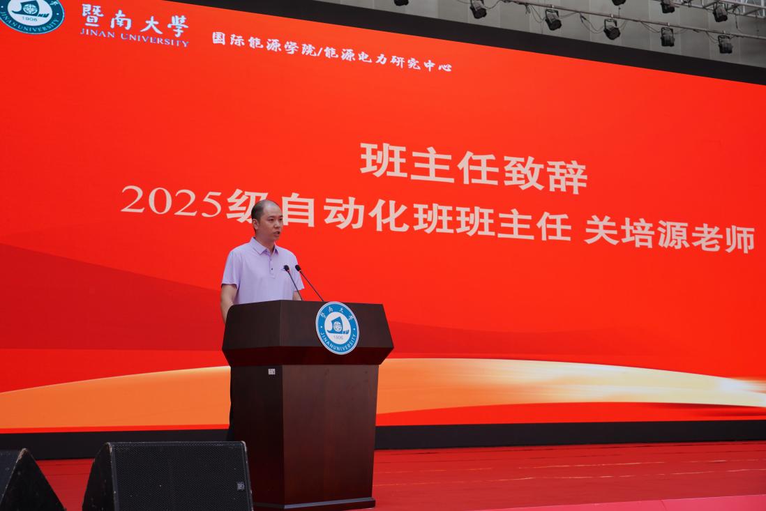 会上,学院为2025级班主任颁发聘书。自动化班班主任关培源老师作为教师代表发言,他指出,大学是一个让我们不断认识自己、挑战自己、超越自己的地方,在这里既要仰望星空追求梦想,也要脚踏实地把握每一分钟。他代表全体教师承诺,将以高度的责任感陪伴学生成长,和同学们“双向奔赴”。